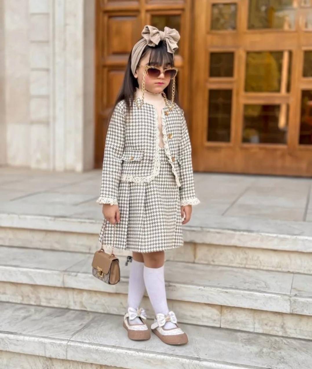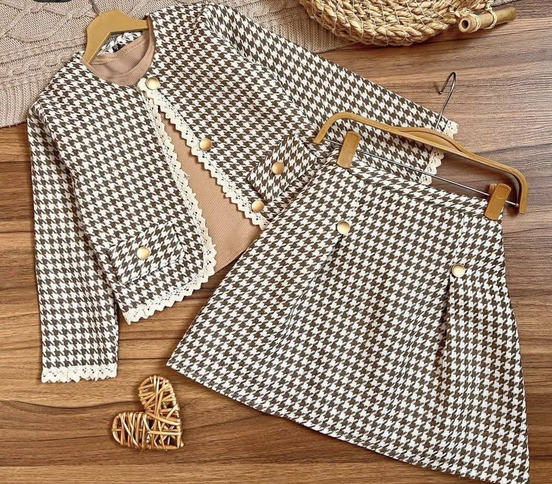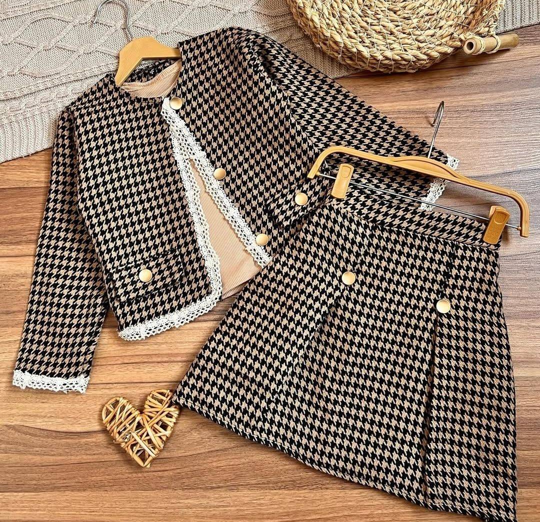 سایز۵:قد کت:۴۲ پهنا:۳۵ قد آستین:۴۲ قد تاپ:۴۰ پهنا:۳۲ قد دامن:۴۰