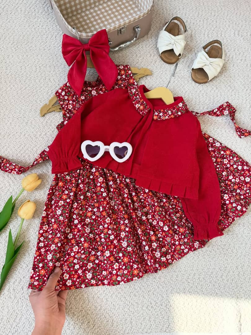 قد کت: 30 — بین دوزیربغل: 36 — قد آستین از سرشانه: 43 — قد سارافن: 68 — بین دوزیربغل سارافن: 35
